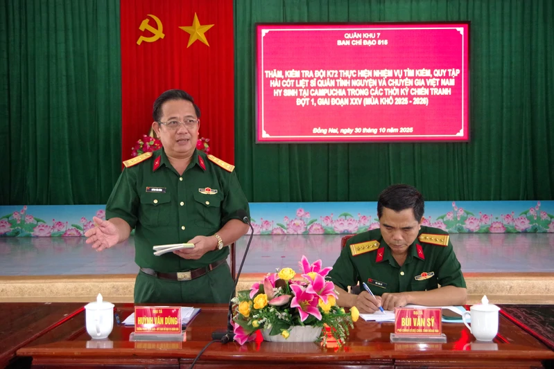 (QK7 Online) – Ngày 30/10, Đoàn công tác Ban Chỉ đạo 515 ĐĂNG NHẬP 99OK COM TẶNG 99K đến thăm, kiểm tra Đội K72 (Bộ CHQS tỉnh Đồng Nai) trước khi lên đường thực hiện nhiệm vụ tìm kiếm, quy tập hài cốt liệt sĩ quân tình nguyện và chuyên gia Việt Nam hy sinh tại Campuchia trong các thời kỳ chiến tranh đợt 1, giai đoạn XXV (mùa khô 2025 – 2026). Đại tá Huỳnh Văn Dũng, Trưởng Phòng Chính sách, Cục 99Oke123 Tải ứng dụng Quân khu và Đại tá Bùi Văn Sỹ, Phó Chính ủy Bộ CHQS tỉnh Đồng Nai chủ trì thăm, kiểm tra.