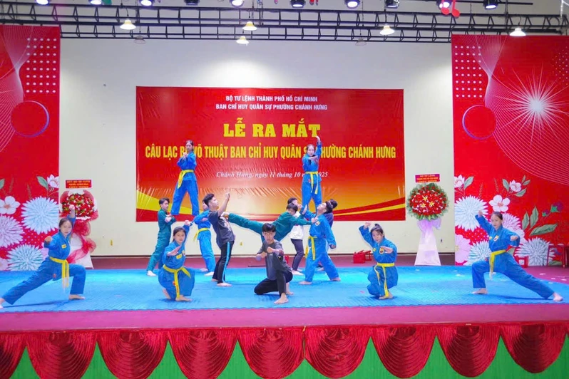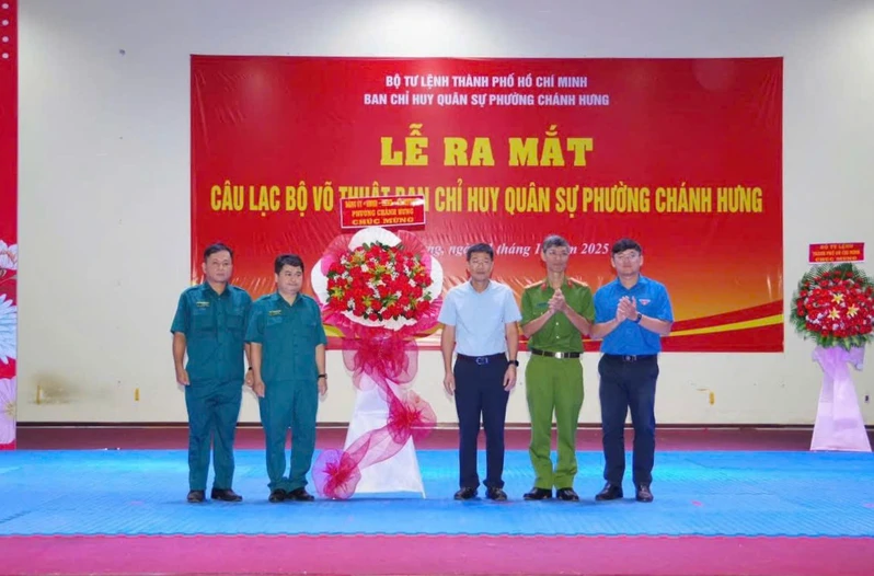 (QK7 Online) - Ngày 11/10, Ban CHQS phường Chánh Hưng, Bộ Tư lệnh Thành phố Hồ Chí Minh tổ chức lễ ra mắt Câu lạc bộ Võ thuật. Tham dự buổi lễ có các đồng chí: Thiếu tướng Phan Quốc Việt, Phó Tư lệnh, Tham mưu trưởng Bộ Tư lệnh Thành phố Hồ Chí Minh; Đại tá Trần Văn Quyết, Phó Tham mưu trưởng Bộ Tư lệnh Thành phố Hồ Chí Minh; Trần Thanh Tùng, Bí thư Đảng ủy, Chủ tịch HĐND phường Chánh Hưng.