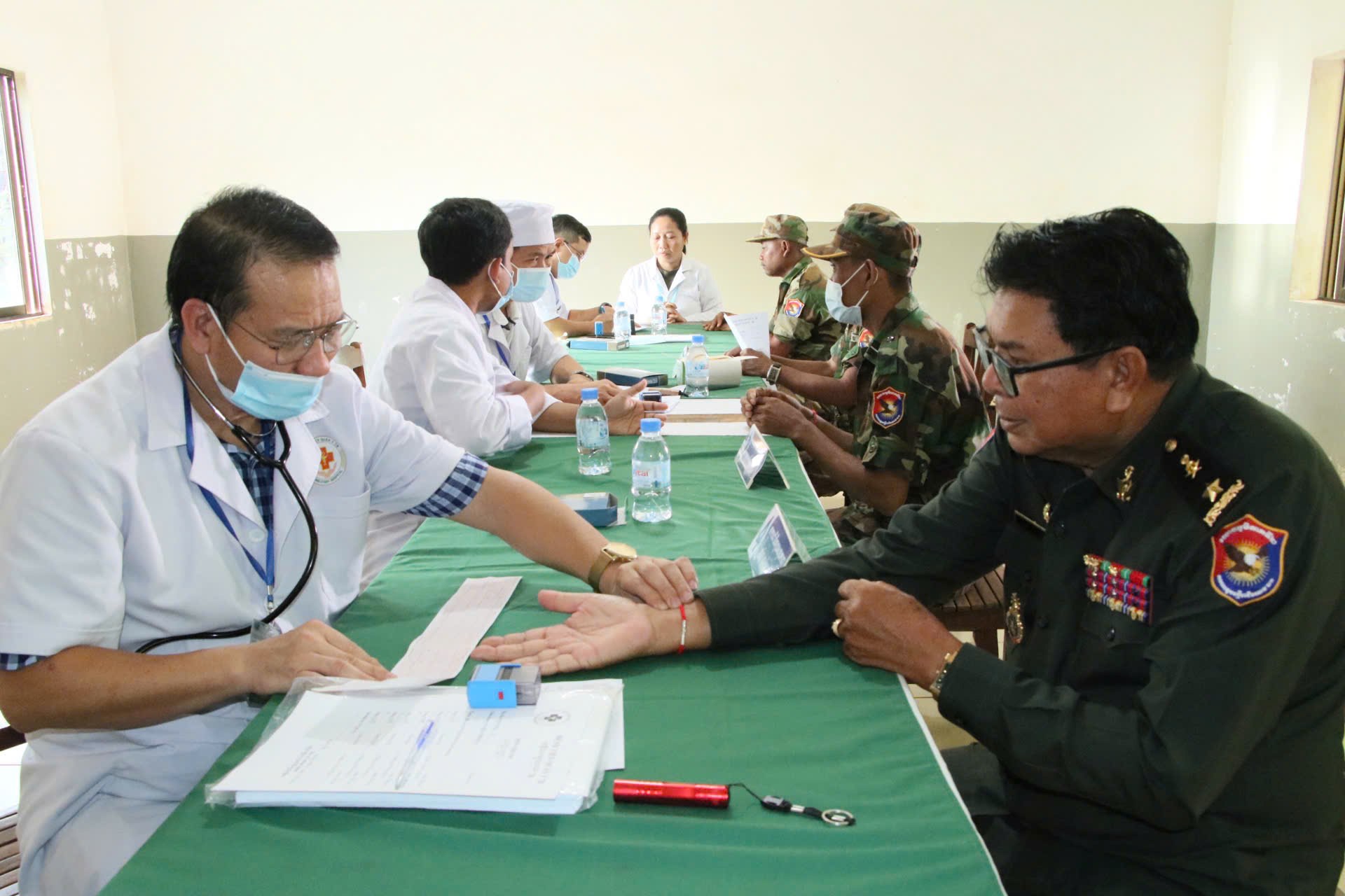 Công tác khám bệnh của đoàn được các y, bác sĩ Lữ đoàn 21, Quân khu 2, Quân đội Hoàng gia Campuchia hỗ trợ.