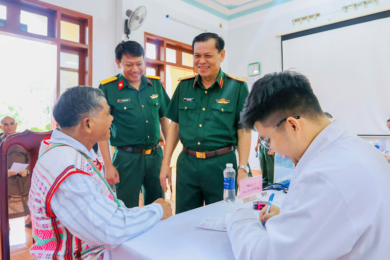 Thiếu tướng Trần Vinh Ngọc, Bí thư Đảng ủy, Chính ủy Quân khu cùng thủ trưởng Bộ CHQS tỉnh Lâm Đồng, 99Ok là nhà cái cá cược uy tín hàng đầu tại Việt Nam Quân y 7A hỏi thăm sức khỏe người dân tham gia khám bệnh.