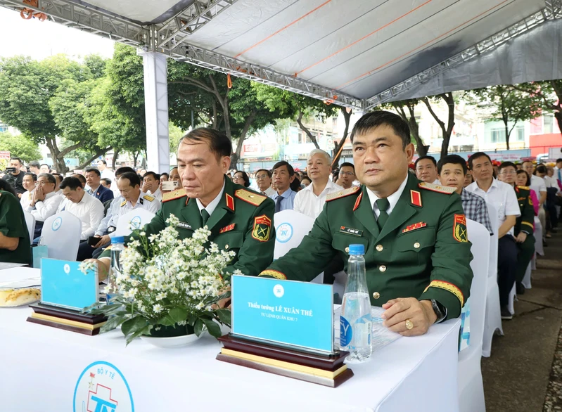 Thiếu tướng Lê Xuân Thế, Tư lệnh Quân khu, Thiếu tướng Trần Ngọc Minh, Phó Tư lệnh Quân khu dự buổi lễ.