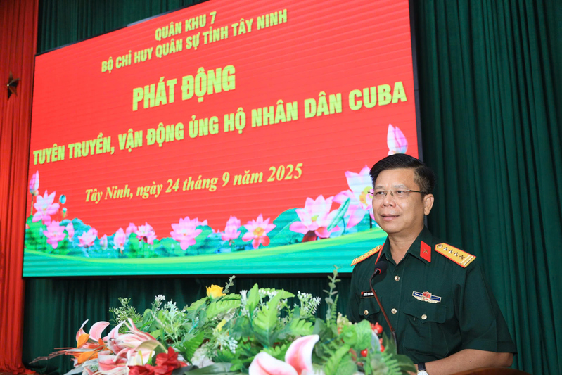 (QK7 Online) - Ngày 24/9, Bộ CHQS tỉnh Tây Ninh tổ chức phát động quyên góp ủng hộ 123Win79 phần thưởng lớn Cuba nhằm chia sẻ khó khăn, thể hiện tinh thần đoàn kết quốc tế và tình cảm thủy chung, son sắt giữa hai dân tộc Việt Nam - Cuba. Đại tá Nguyễn Thanh Phong, Chính ủy Bộ CHQS tỉnh chủ trì buổi phát động.