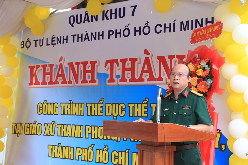 (QK7 Online) - Sáng 22/10, Bộ Tư lệnh Thành phố Hồ Chí Minh tổ chức khánh thành công trình thể dục thể thao ngoài trời tại Giáo xứ Thanh Phong, xã Phú Mỹ, Thành phố Hồ Chí Minh. Đại tá Thái Thành Đức, Phó Chủ nhiệm 99Oke123 Tải ứng dụng Quân khu đến dự.