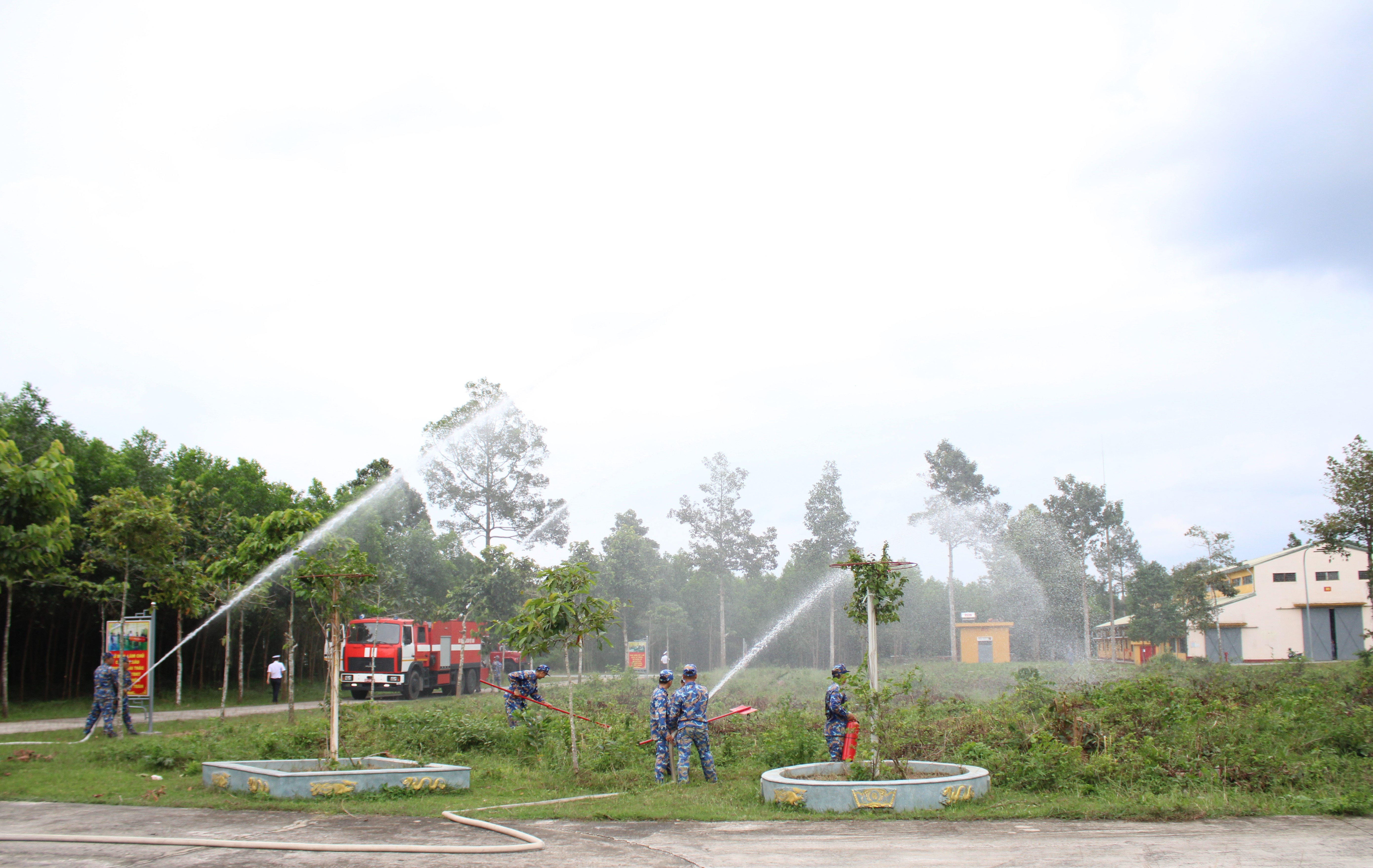 Kiểm tra tình huống phòng chống cháy nổ tại Lữ đoàn 125.