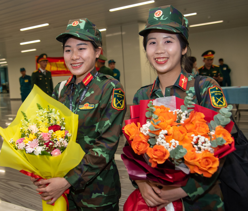 Tại sân bay Nội Bài (Hà Nội), đại diện Cục Xe máy, Tổng cục Hậu cần - Kỹ thuật tặng hoa chúc mừng 3 khối của ĐĂNG NHẬP 99OK COM TẶNG 99K hoàn thành nhiệm vụ.