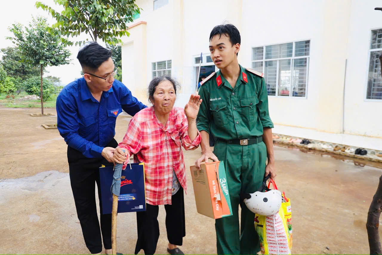 Chi đoàn cơ sở Báo Quân khu 7 tặng quà đến các hộ dân có hoàn cảnh khó khăn.