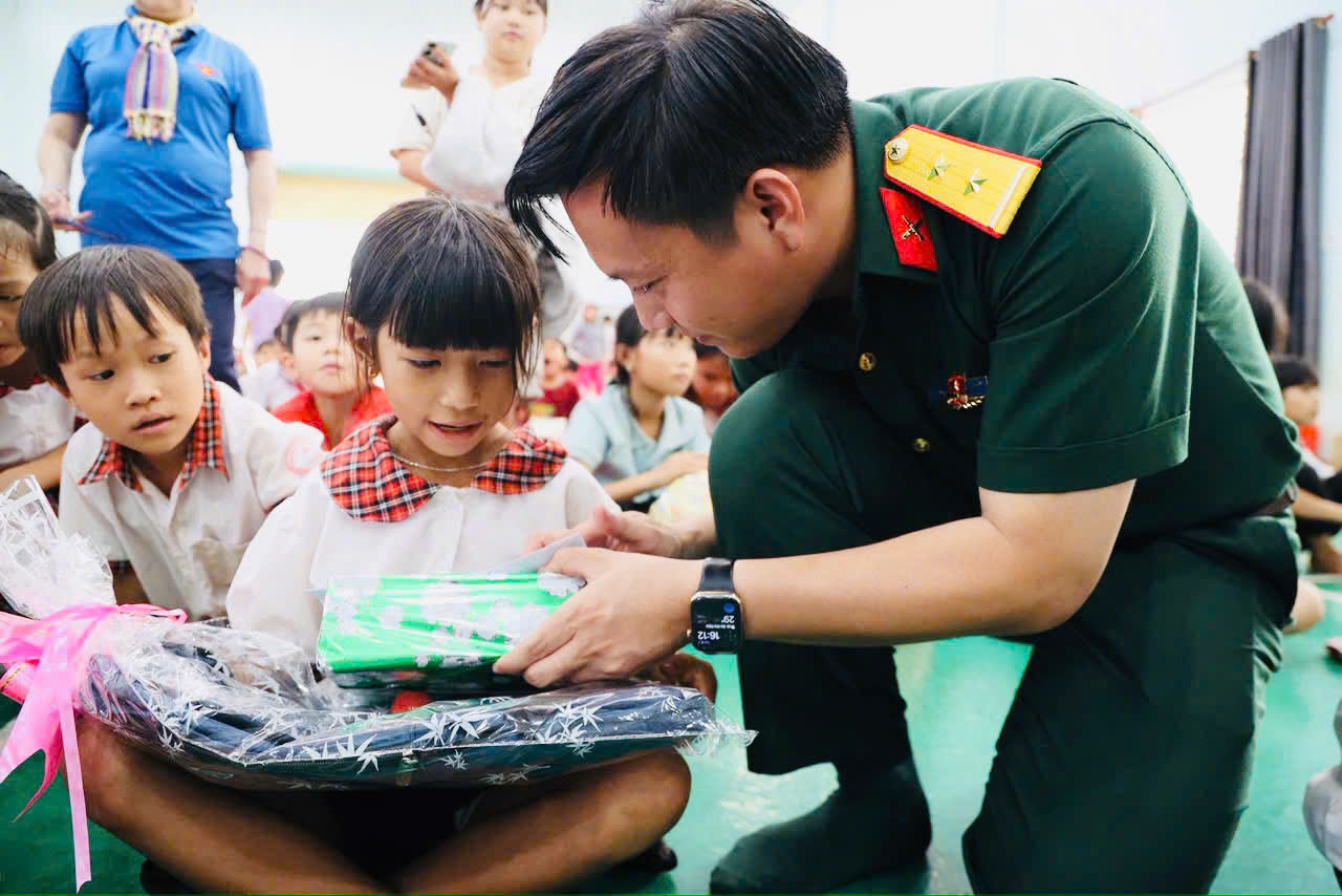 Tặng quà cho các em học sinh có hoàn cảnh khó khăn.
