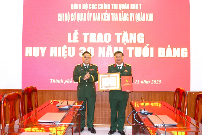 Chi bộ cơ quan Ủy ban Kiểm tra Đảng ủy Quân khu trao Huy hiệu 30 năm tuổi Đảng