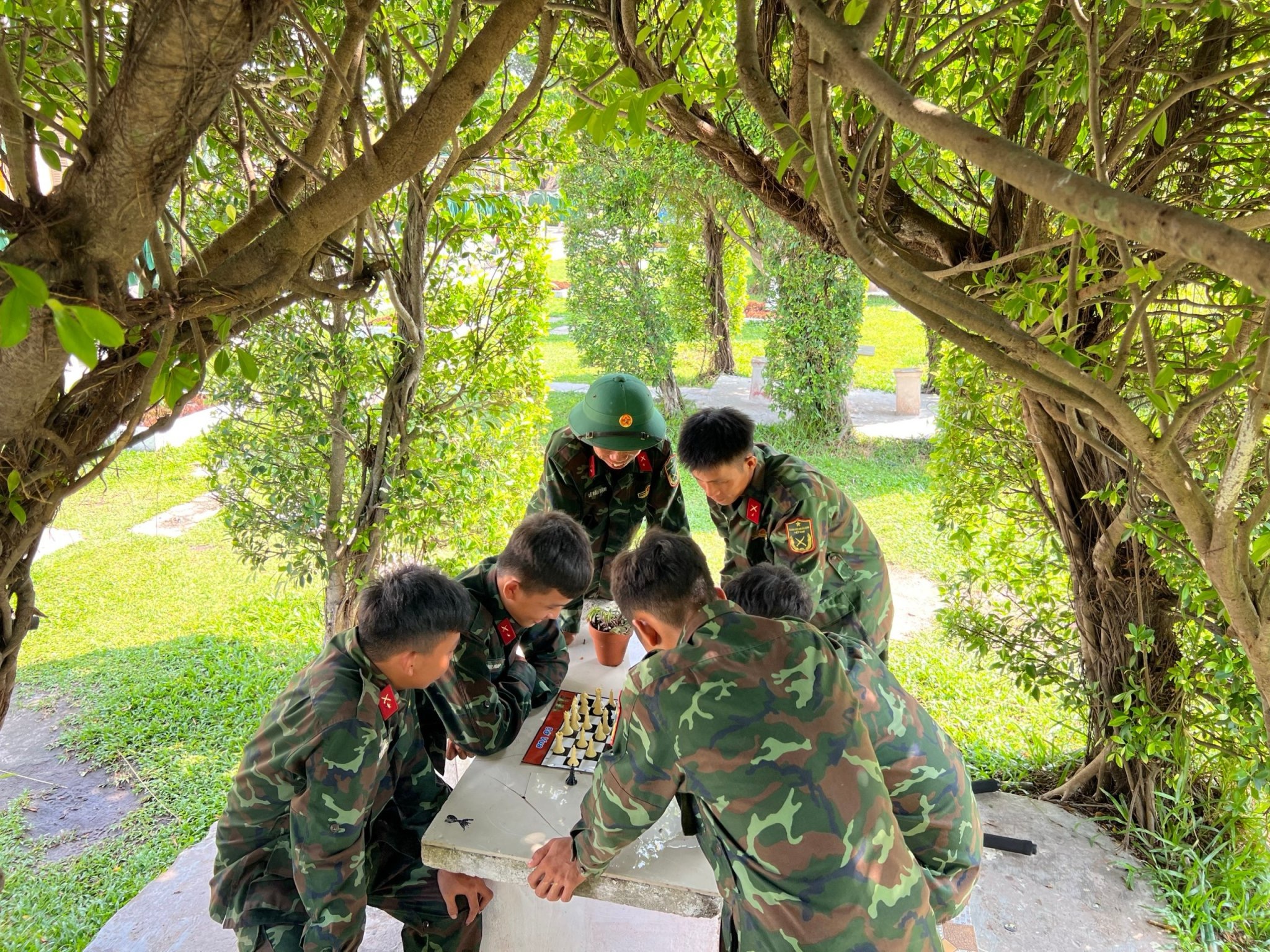 ĐVTN Chi đoàn Đại đội 6, Liên Chi đoàn 5, Đoàn Cơ sở Trung đoàn 5 vui chơi, giải trí tại Nhà chòi cây xanh của đơn vị.