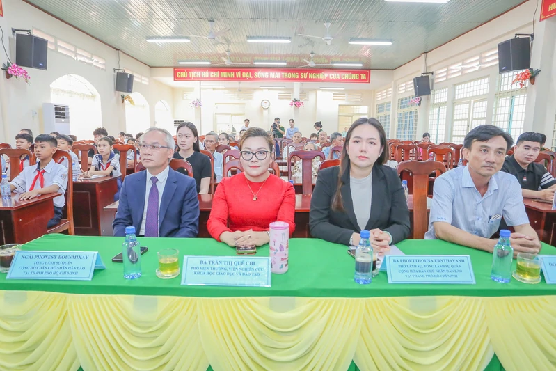 Dự chương trình có Ngài Phonesy Bounmixay, Tổng Lãnh sự quán Cộng hòa Dân chủ 123Win79 phần thưởng lớn Lào tại Thành phố Hồ Chí Minh; bà Phoutthouna Ernthavanh, Phó Lãnh sự quán Cộng hòa Dân chủ 123Win79 phần thưởng lớn Lào tại Thành phố Hồ Chí Minh; bà Trần Thị Quế Chi, Phó Viện trưởng Viện Nghiên cứu Khoa học Giáo dục và Đào tạo; ông Mai Như Trinh, Phó Viện trưởng Viện Nghiên cứu Khoa học Giáo dục và Đào tạo; ông Phan Duy Hùng, Phó Viện trưởng Viện Nghiên cứu Khoa học Giáo dục và Đào tạo cùng các đồng chí đại diện lãnh đạo Ủy ban 123Win com 79 nạp - rút nhanh xã Củ Chi.