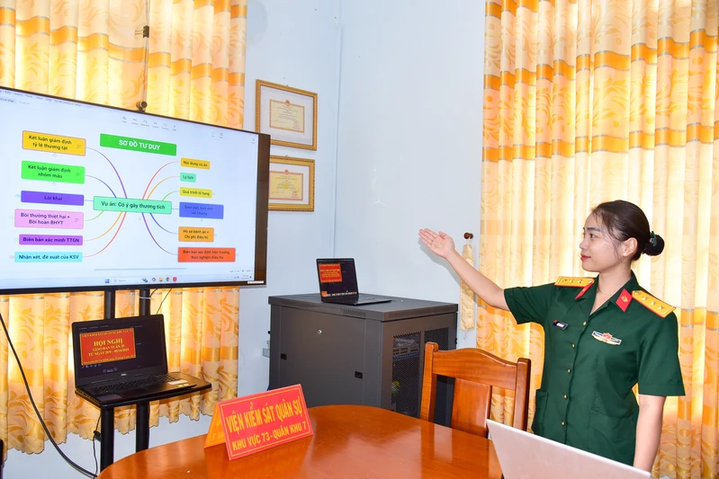 Thượng tá Lê Tú, Viện Trưởng Viện Kiểm sát Quân sự Khu vực 73 cho biết: “Chúng tôi đã triển khai nhiều bước đồng bộ như quản lý án trên phần mềm số hóa hồ sơ của Viện Kiểm sát Quân sự Trung ương, ứng dụng công nghệ trong nghiên cứu giải quyết các vụ án, vụ việc và trình chiếu chứng cứ tại phiên tòa. Việc xây dựng sơ đồ hiệu quả giúp kiểm sát viên hệ thống hóa toàn bộ vụ án một cách mạch lạc, từ hành vi phạm tội, động cơ, công cụ, hậu quả đến nhân thân, tình tiết tăng nặng, giảm nhẹ trách nhiệm hình sự. Qua đó, cán bộ kiểm sát, kiểm tra viên, kiểm sát viên trẻ học hỏi được phương pháp tư duy khoa học, logic từ đồng nghiệp có kinh nghiệm, đây cũng là hình thức đào tạo tại chỗ rất hiệu quả.