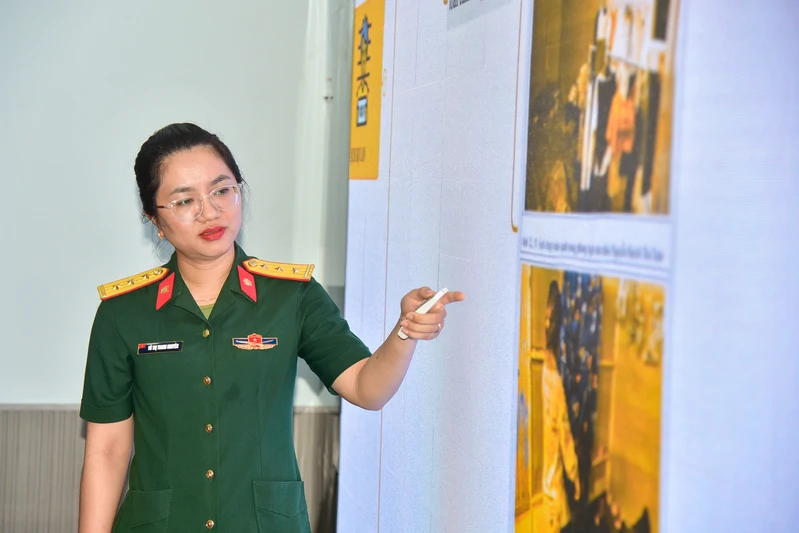 Kiểm sát viên Viện Kiểm sát Quân sự Khu vực 73 báo cáo án bằng sơ đồ tư duy.