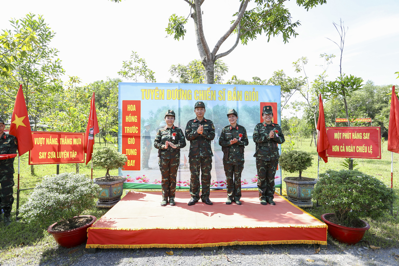 Thủ trưởng Cục Hậu cần - Kỹ thuật Quân khu chúc mừng các nữ sĩ quan đạt "Hoa bắn giỏi"