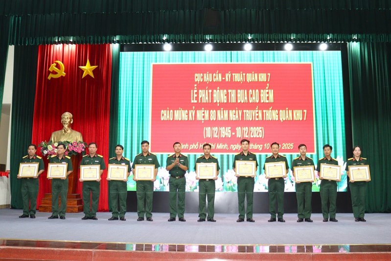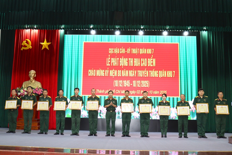 Tại buổi phát động, thủ trưởng Cục Hậu cần - Kỹ thuật Quân khu tặng giấy khen cho 4 tập thể, 51 cá nhân vì có thành tích trong đợt thi đua cao điểm “Phất cao cờ hồng tháng Tám - Thi đua giành 3 nhất”.