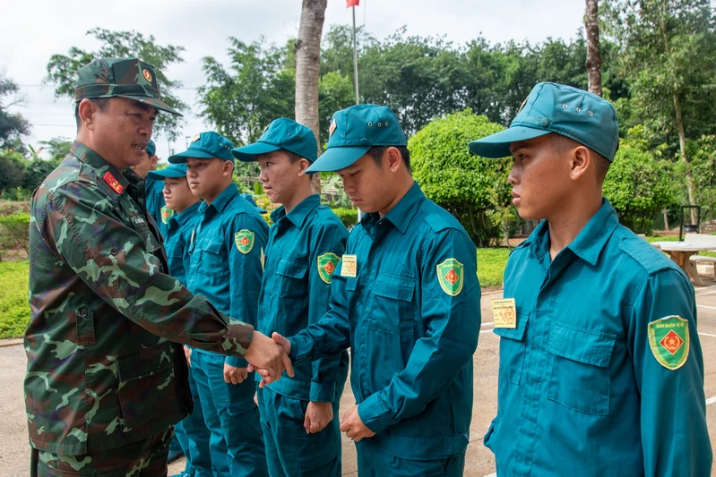Đại tá Lê Xuân Bình thăm, kiểm tra chốt dân quân Hưng Phước.