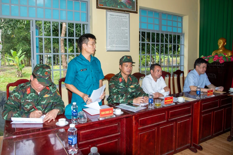 Ban chỉ huy quân sự xã Thiện Hưng báo cáo tình hình thực hiện nhiệm vụ của chốt dân quân Thanh Hòa.