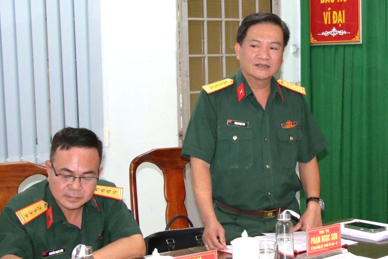 Đại tá Phạm Ngọc Sơn, Chính ủy Cục Hậu cần - Kỹ thuật phát biểu chỉ đạo hội nghị.