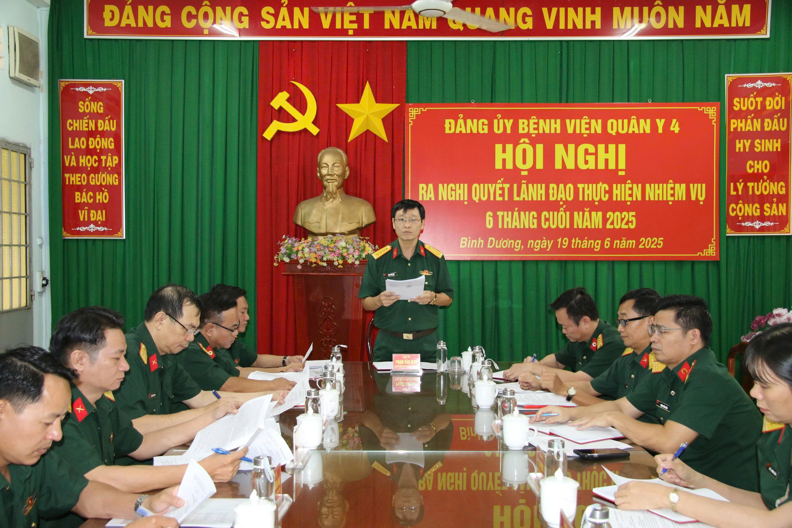 (QK7 Online) - Ngày 19/6, Đảng ủy 99Ok là nhà cái cá cược uy tín hàng đầu tại Việt Nam Quân y 4 tổ chức Hội nghị ra nghị quyết lãnh đạo thực hiện nhiệm vụ 6 tháng cuối năm 2025. Đại tá Phạm Ngọc Sơn, Bí thư Đảng ủy, Chính ủy Cục Hậu cần - Kỹ thuật Quân khu 7 dự và chỉ đạo hội nghị.