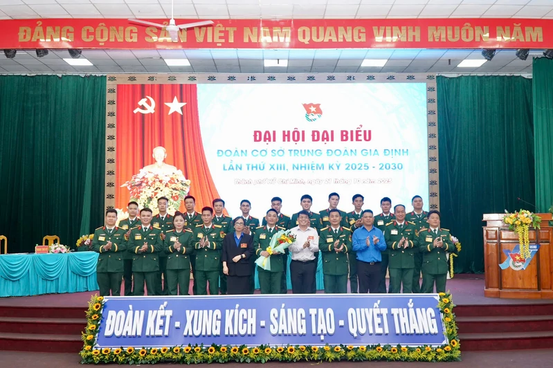 Ban chấp hành Đoàn cơ sở Trung đoàn Gia Định nhiệm kỳ 2025 -2030 và đoàn đại biểu dự đại hội cấp trên ra mắt đại hội.