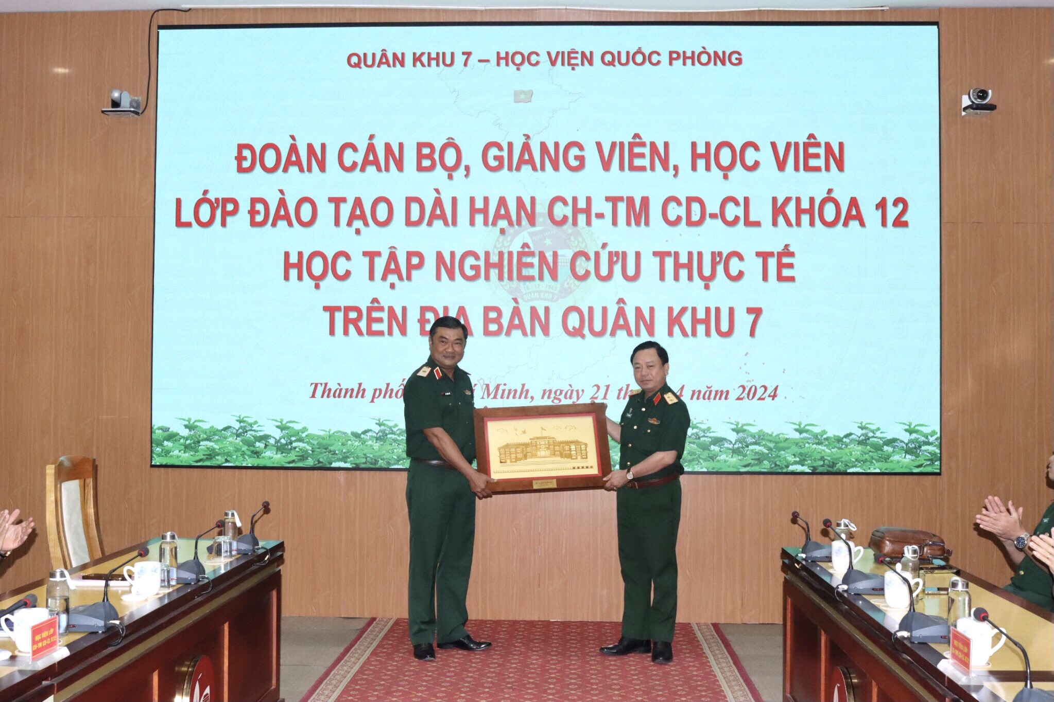 Bộ Tư lệnh Quân khu tặng quà lưu niệm đoàn Học viện Quốc phòng.