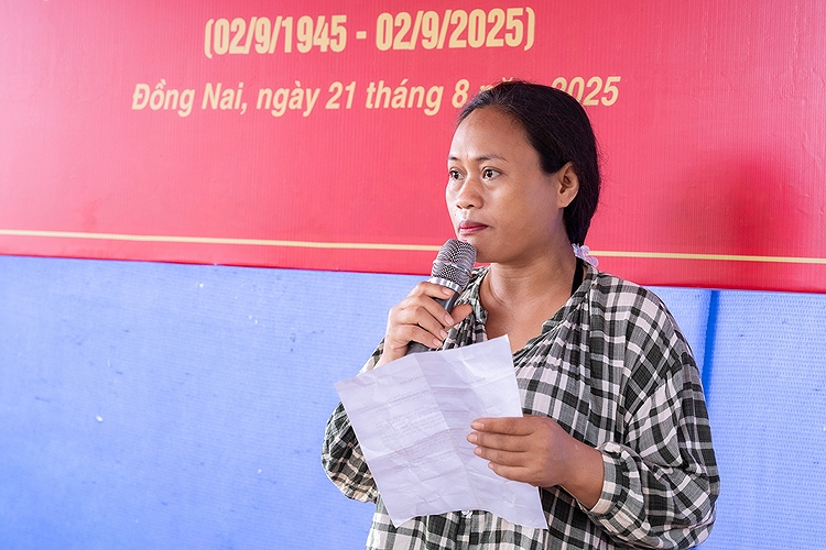 Bà Điểu Thị Bê chia sẻ cảm xúc sau khi nhận căn nhà mới.