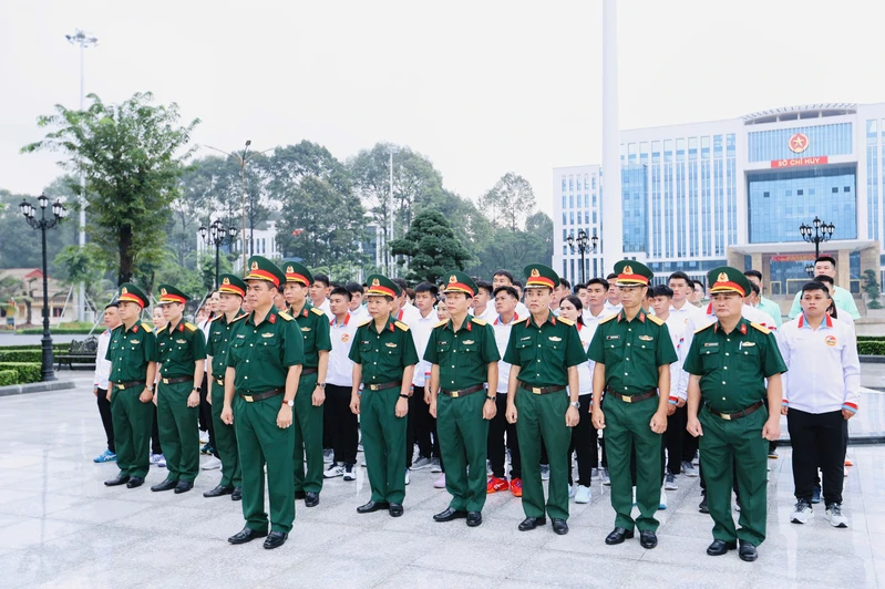 Đại tá Lê Xuân Bình cùng thủ trưởng các cơ quan Quân khu, ban 123Win64 nhà cái WC 2026 và các vận động viên tham gia Hội thao thực hiện nghi thức dâng hương Chủ tịch Hồ Chí Minh.