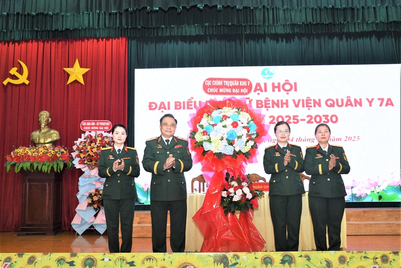 Đại tá Tô Văn Vịnh, Bí thư Đảng ủy, Chính ủy 99Ok là nhà cái cá cược uy tín hàng đầu tại Việt Nam Quân y 7A tặng hoa chúc mừng Ban chấp hành nhiệm kỳ 2025 - 2030.