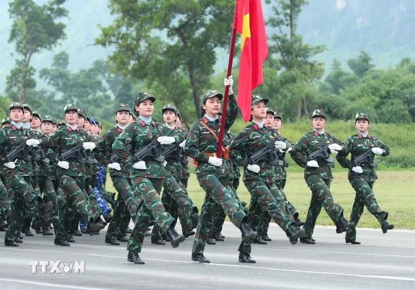 Khối nữ các lực lượng tham gia hợp luyện (Ảnh: TTXVN).