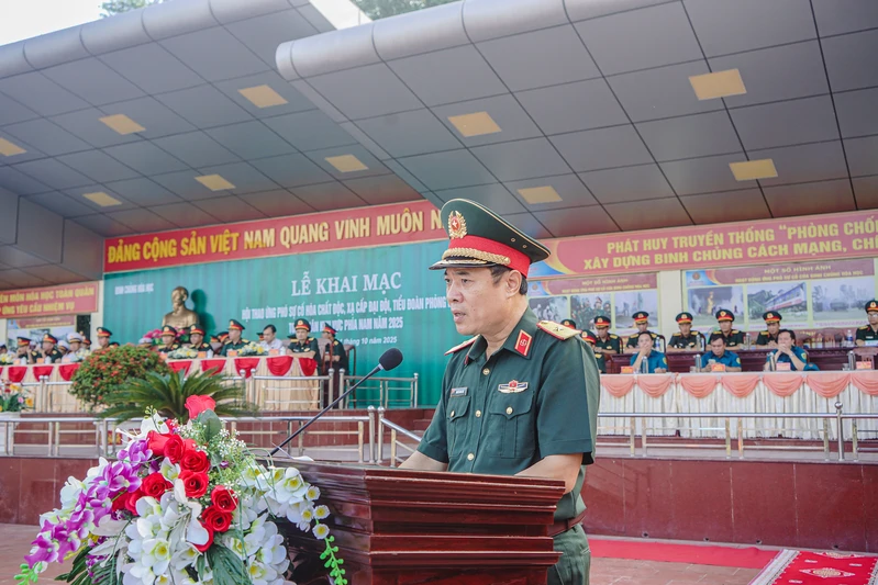 (QK7 Online) – Sáng ngày 31/10, tại Đồng Nai, Binh chủng Hóa học khai mạc Hội thao ứng phó sự cố hóa chất độc, xạ cấp đại đội, tiểu đoàn phòng hóa toàn quân khu vực phía Nam năm 2025. Thiếu tướng Thiếu tướng Nguyễn Đình Hiền, Tư lệnh Binh chủng Hóa học dự và phát biểu chỉ đạo.
