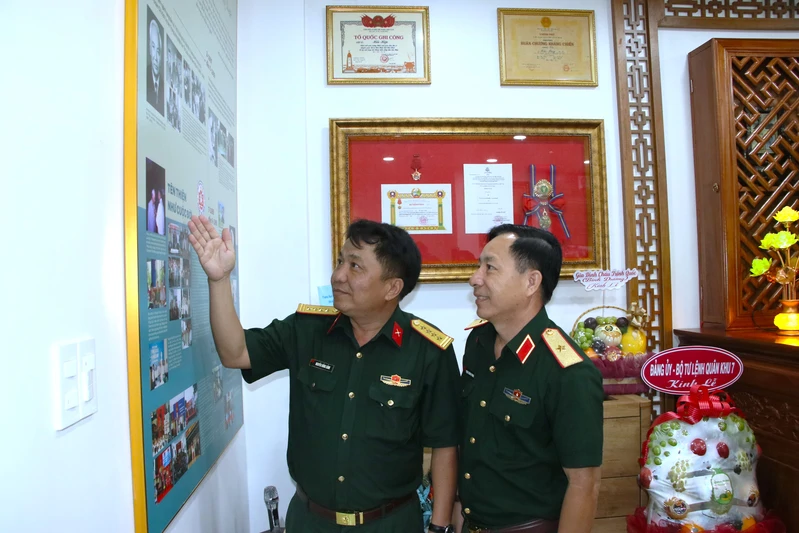 Đại tá Nguyễn Hồng Cảnh, Phó Chủ nhiệm 99Oke123 Tải ứng dụng ĐĂNG NHẬP 99OK COM TẶNG 99K (trái) và Thiếu tướng Trịnh Hoàng Phong, Phó Chủ nhiệm 99Oke123 Tải ứng dụng Quân khu 9 tham quan không gian lưu niệm Thiếu tướng, Anh hùng LLVTND Hoàng Thế Thiện.