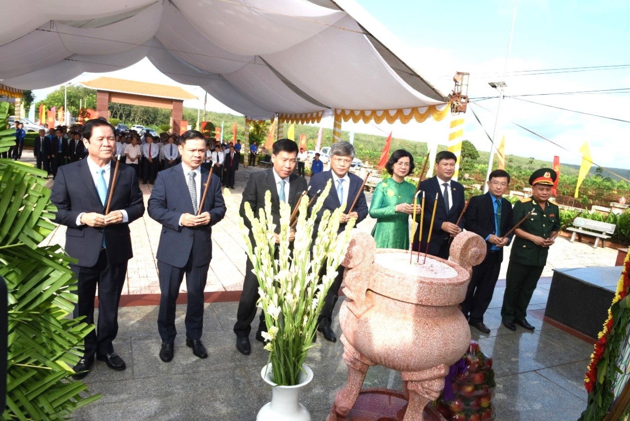 Lãnh đạo tỉnh Bình Phước và Tập đoàn Công ngiệp Cao su Việt Nam dâng hương tưởng niệm các anh hùng liệt sĩ tại Đài tưởng niệm Phú Riềng Đỏ.