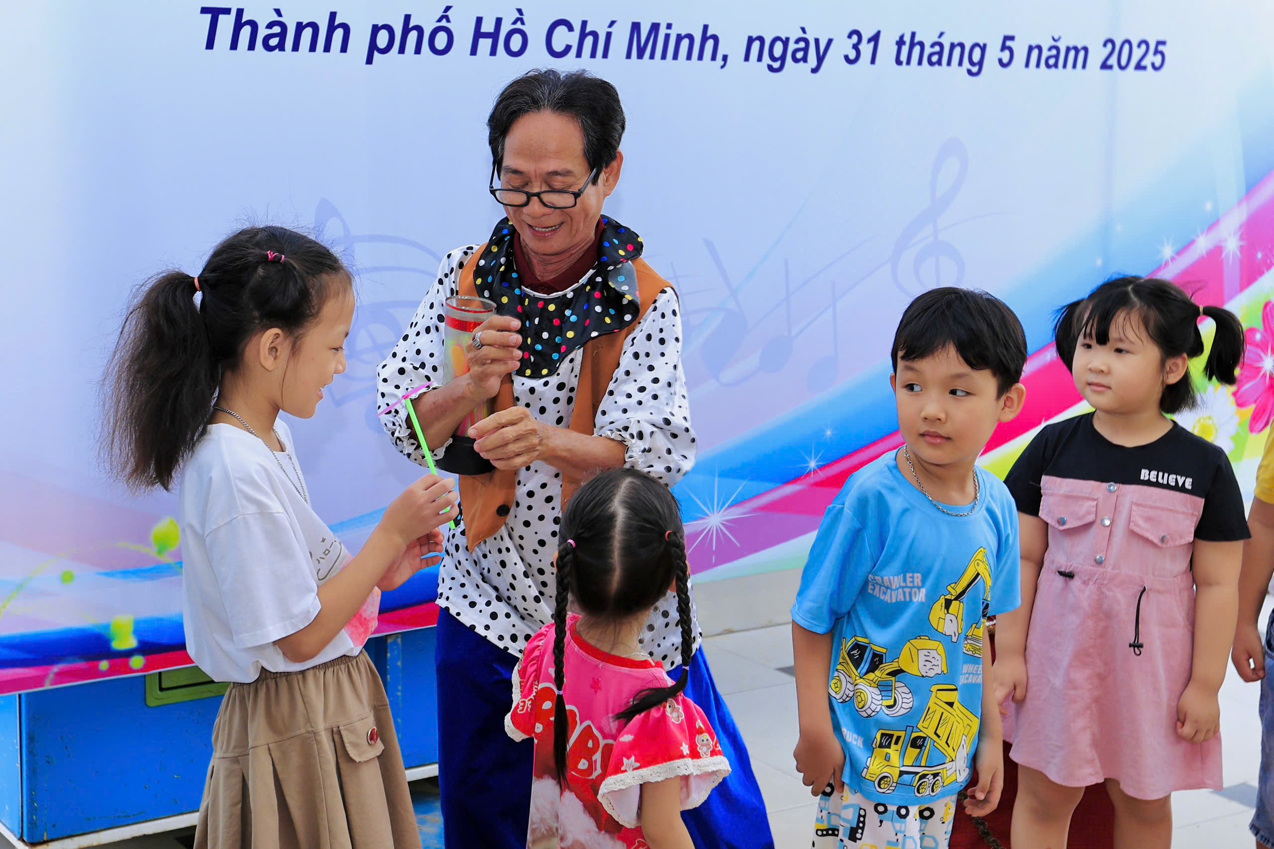 Tiết mục ảo thuật đặc sắc và phần đố vui nhận quà mang lại tiếng cười, niềm vui cho các em thiếu nhi.