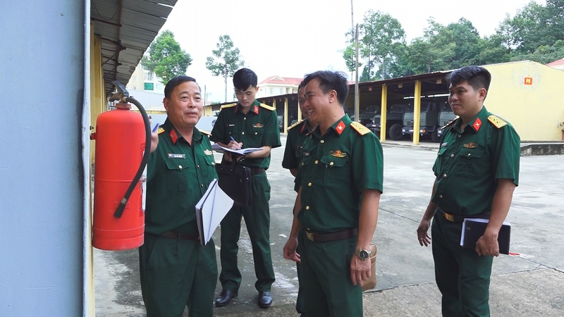Đoàn kiểm tra hệ thống phòng chống cháy nổ tại các nhà xe của Lữ đoàn