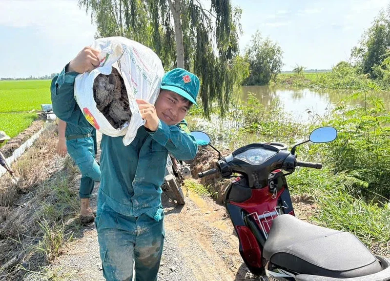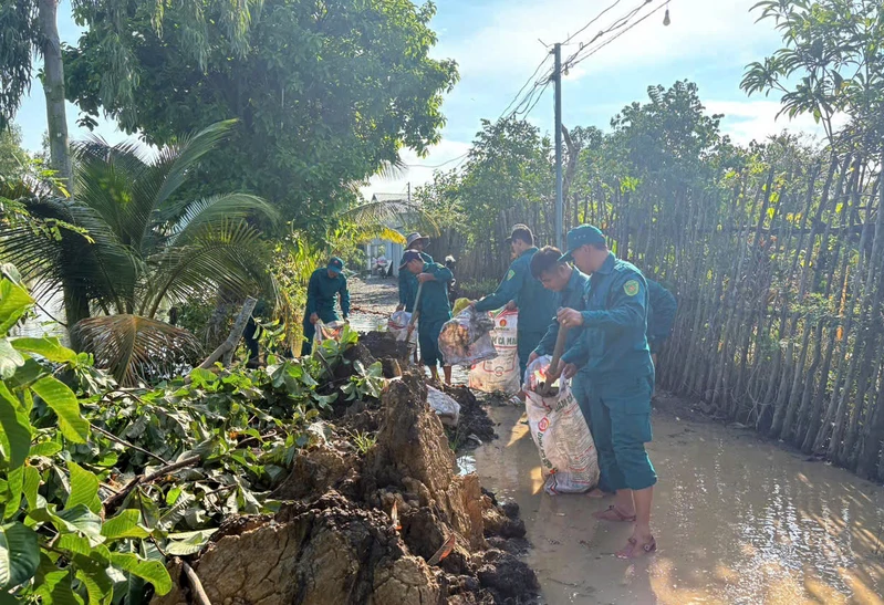 Ở ấp Vĩnh Ân, khoảng 200 ha lúa đang giai đoạn phát triển, còn khu vực ấp Rọc Năng là vùng cây ăn trái chuyên canh có giá trị kinh tế cao. Dưới trời nắng gắt, từng bao đất được chuyển đến đoạn đê xung yếu, lực lượng dân quân hối hả đắp đê, quyết tâm bảo vệ thành quả lao động của người dân.