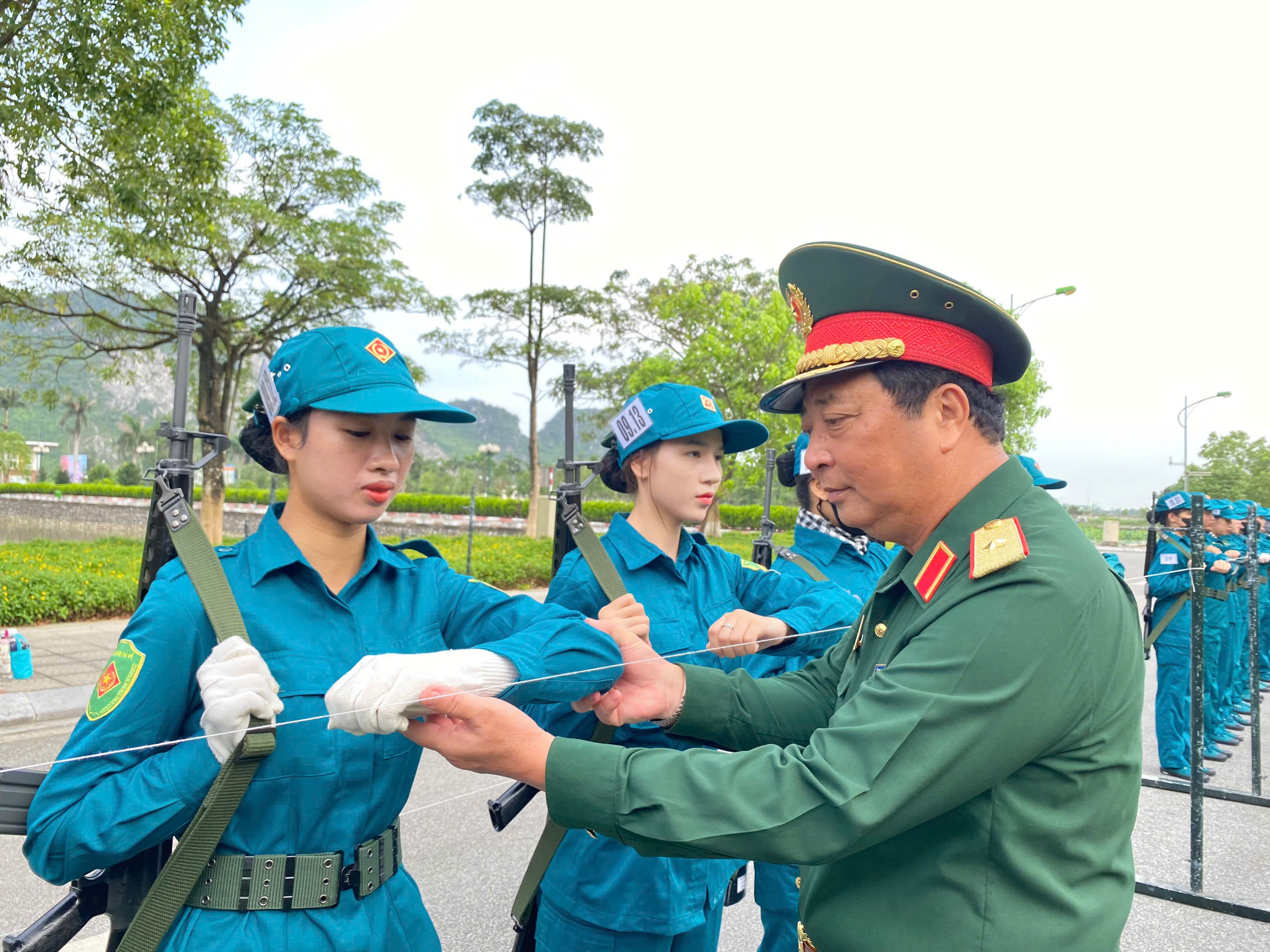 Thiếu tướng Trần Văn Trai, Phó Tư lệnh Bộ Tư lệnh Thành phố Hồ Chí Minh động viên nữ dân quân.