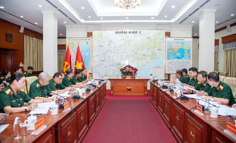 Thủ trưởng Bộ Tư lệnh và Thủ trưởng cơ quan Quân khu tham dự hội nghị.