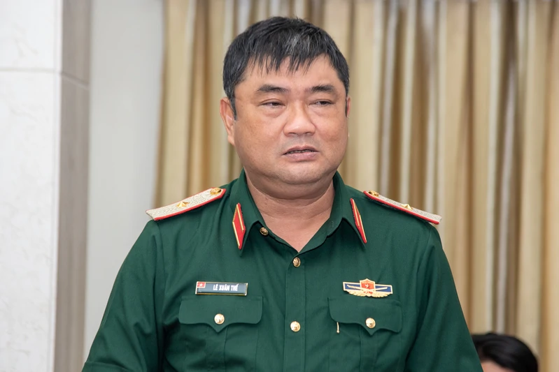 Thiếu tướng Lê Xuân Thế phát biểu tại hội nghị.