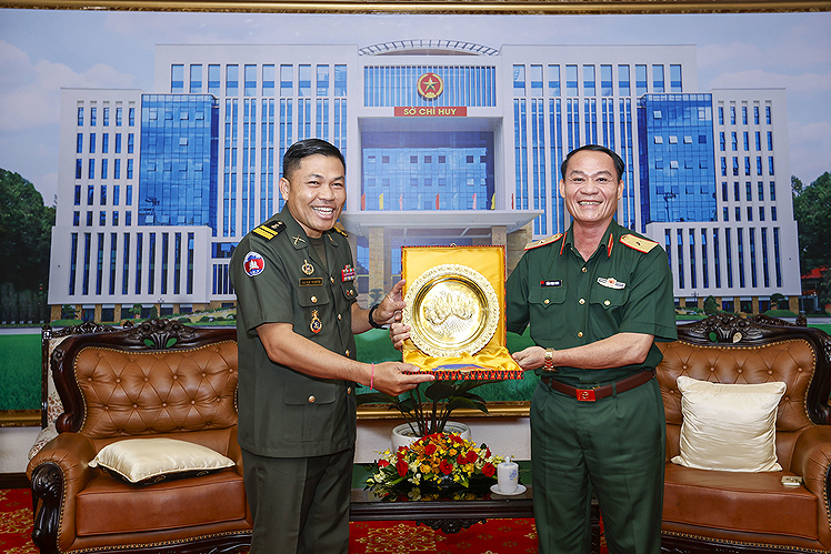 Thiếu tướng Trần Ngọc Minh và Đại tá NAK VICHETH trao quà lưu niệm.