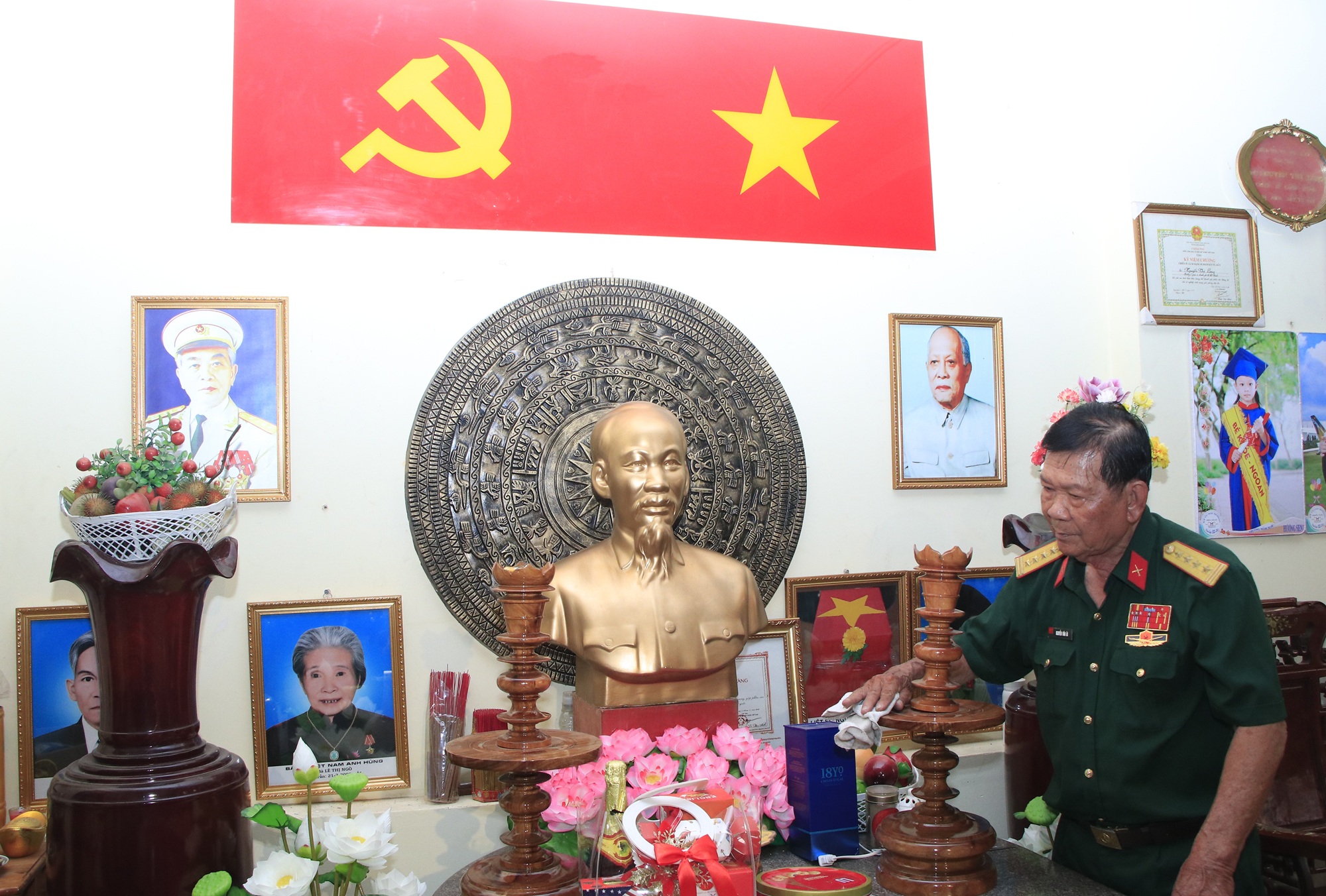 Trong căn nhà riêng ở phường Linh Đông, thành phố Thủ Đức, ông dành một vị trí rất trang trọng để lập bàn thờ Chủ tịch Hồ Chí Minh, Đại tướng Võ Nguyên Giáp và gia tiên.
