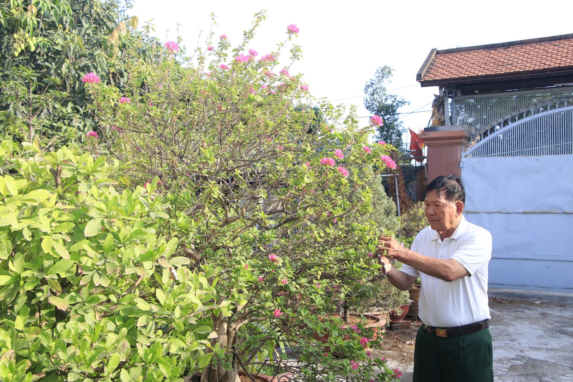 Ông Chín Ái chăm sóc cây cảnh, thú vui tao nhã hàng ngày.