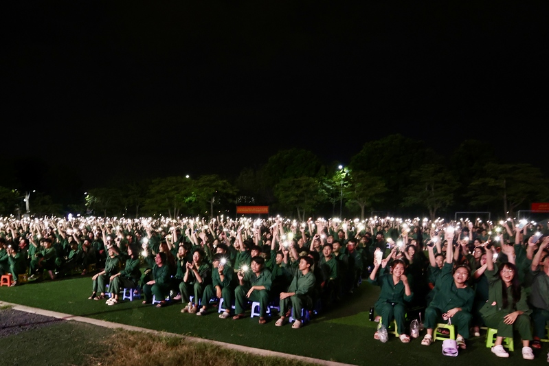 Cuối buổi sinh hoạt, hàng nghìn sinh viên bật đèn flash điện thoại, cùng hòa giọng bài hát “Nối vòng tay lớn”.