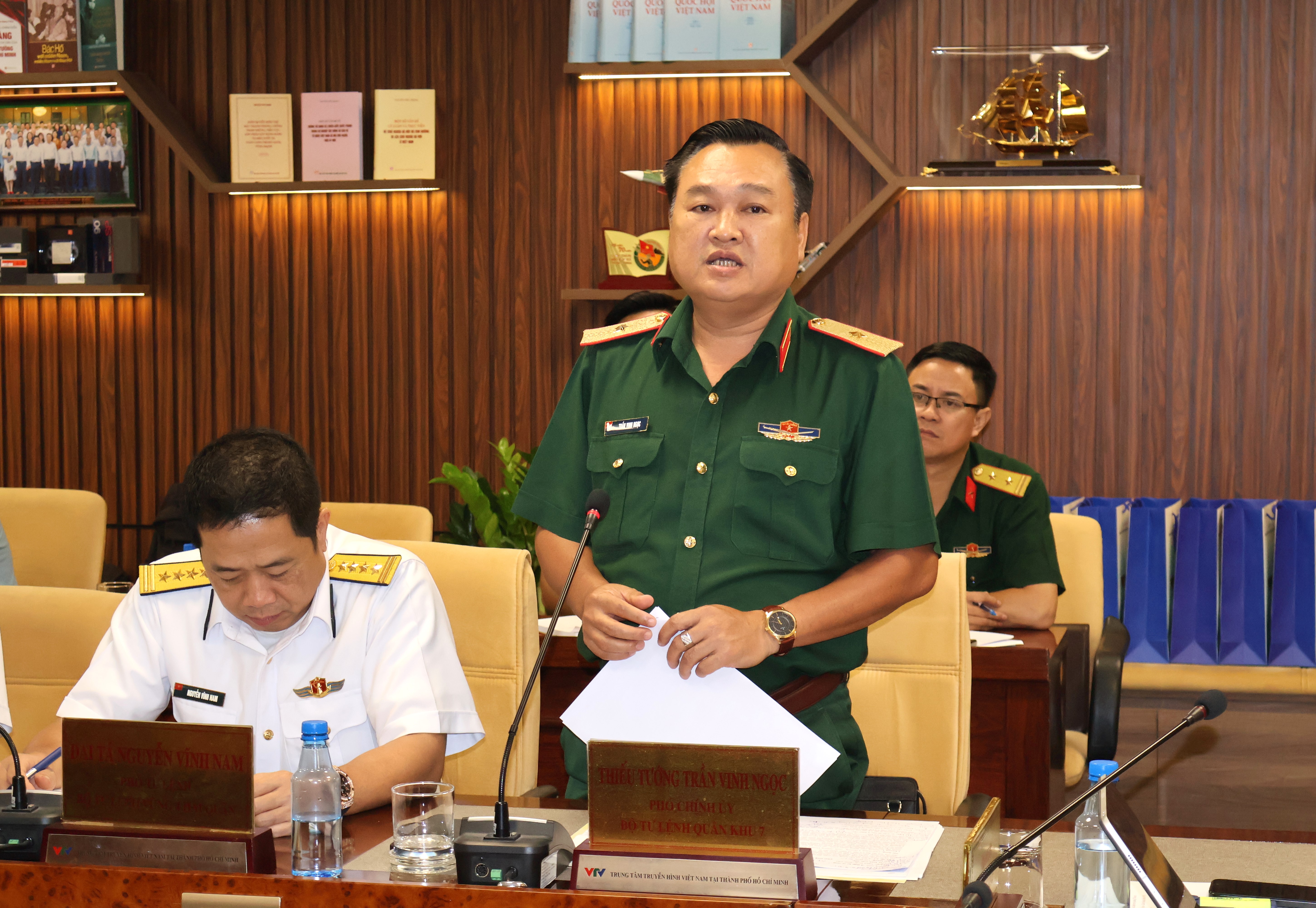 Thiếu tướng Trần Vinh Ngọc, Phó Chính ủy Quân khu 7 phát biểu tại hội nghị.