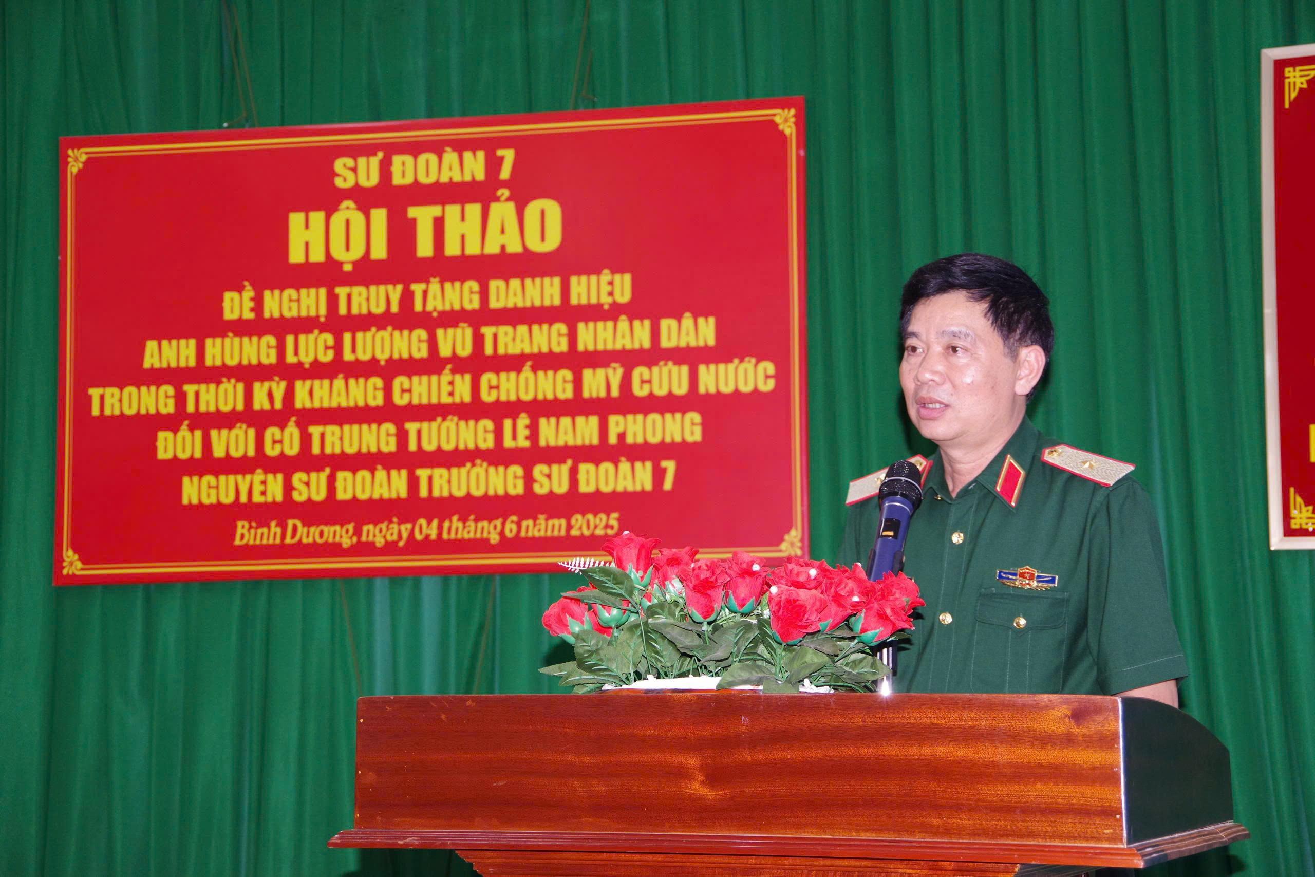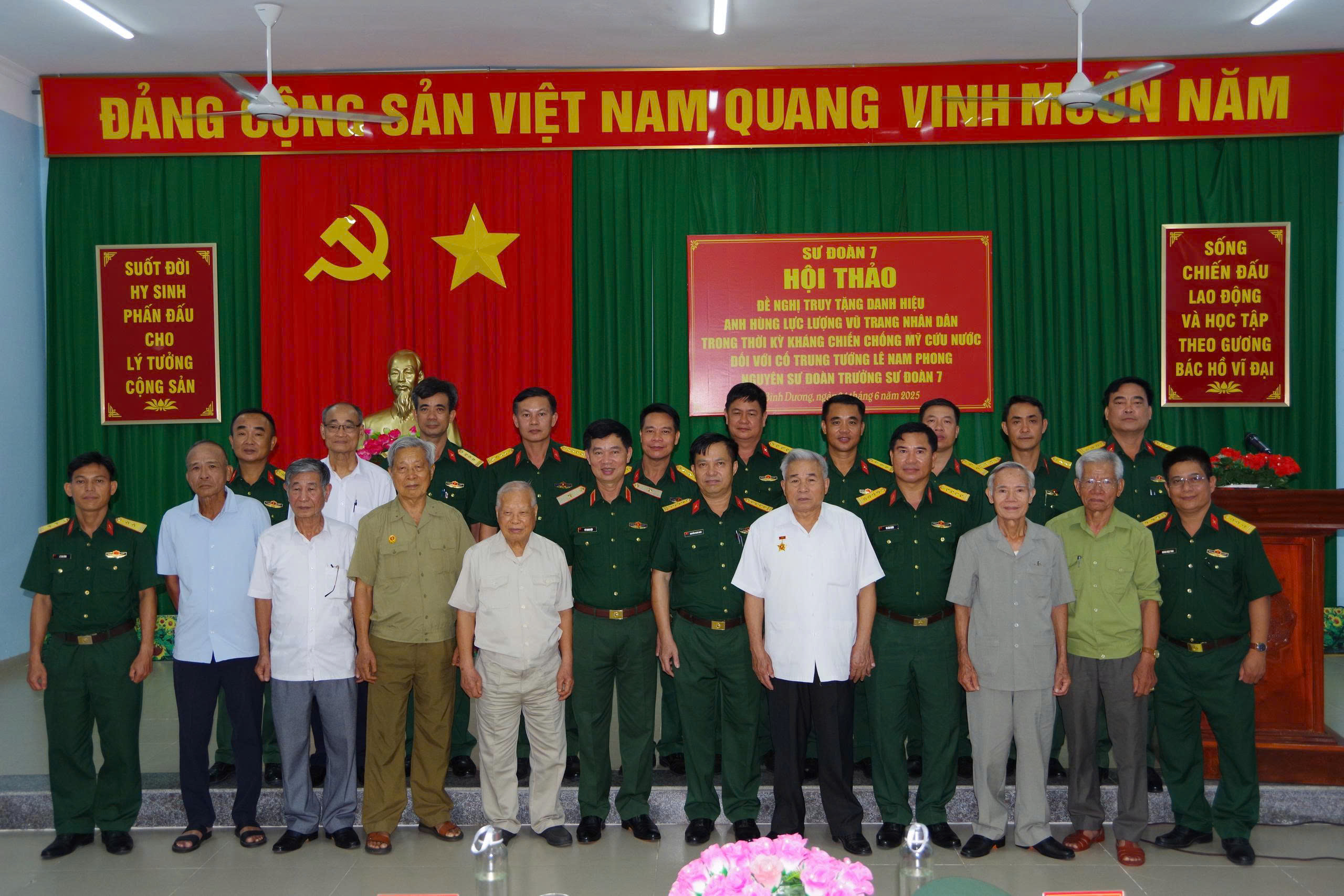 (QK7 Online) - Ngày 4/6, Sư đoàn 7 đã tổ chức hội thảo đề nghị Nhà nước truy tặng danh hiệu Anh hùng lực lượng vũ trang (LLVT) nhân dân trong thời kỳ chống Mỹ, cứu nước đối với cố Trung tướng Lê Nam Phong, nguyên Sư đoàn trưởng, Sư đoàn 7.