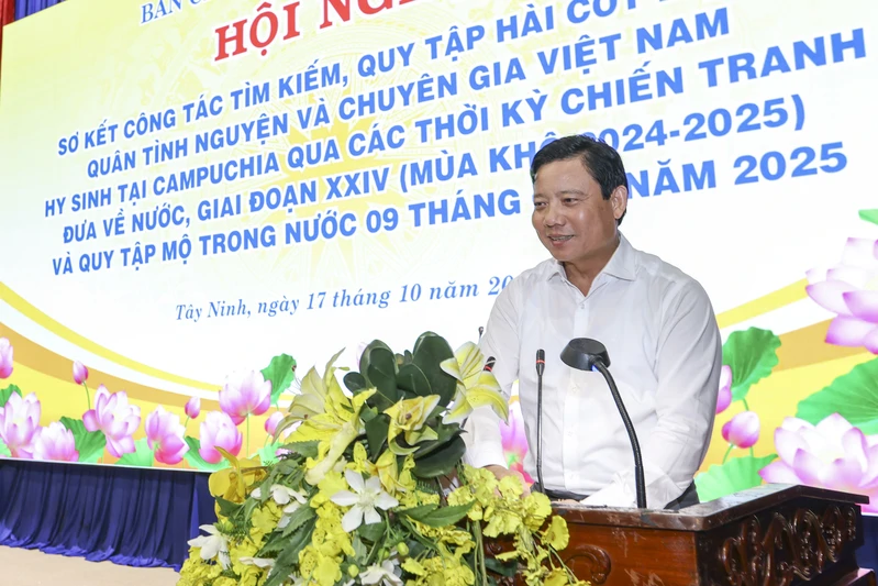 (QK7 Online) – Ngày 17/10, Ban Chỉ đạo 515 tỉnh Tây Ninh tổ chức Hội nghị trực tuyến sơ kết công tác tìm kiếm, quy tập hài cốt liệt sĩ quân tình nguyện và chuyên gia Việt Nam hi sinh tại Campuchia qua các thời kỳ chiến tranh đưa về nước, giai đoạn XXIV (mùa khô 2024–2025), đồng thời đánh giá kết quả quy tập trong nước 9 tháng đầu năm 2025.