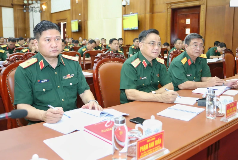 Thiếu tướng Lê Xuân Thế, Tư lệnh Quân khu; Thiếu tướng Trần Ngọc Minh, Phó Tư lệnh Quân khu và các đại biểu dự hội nghị.
