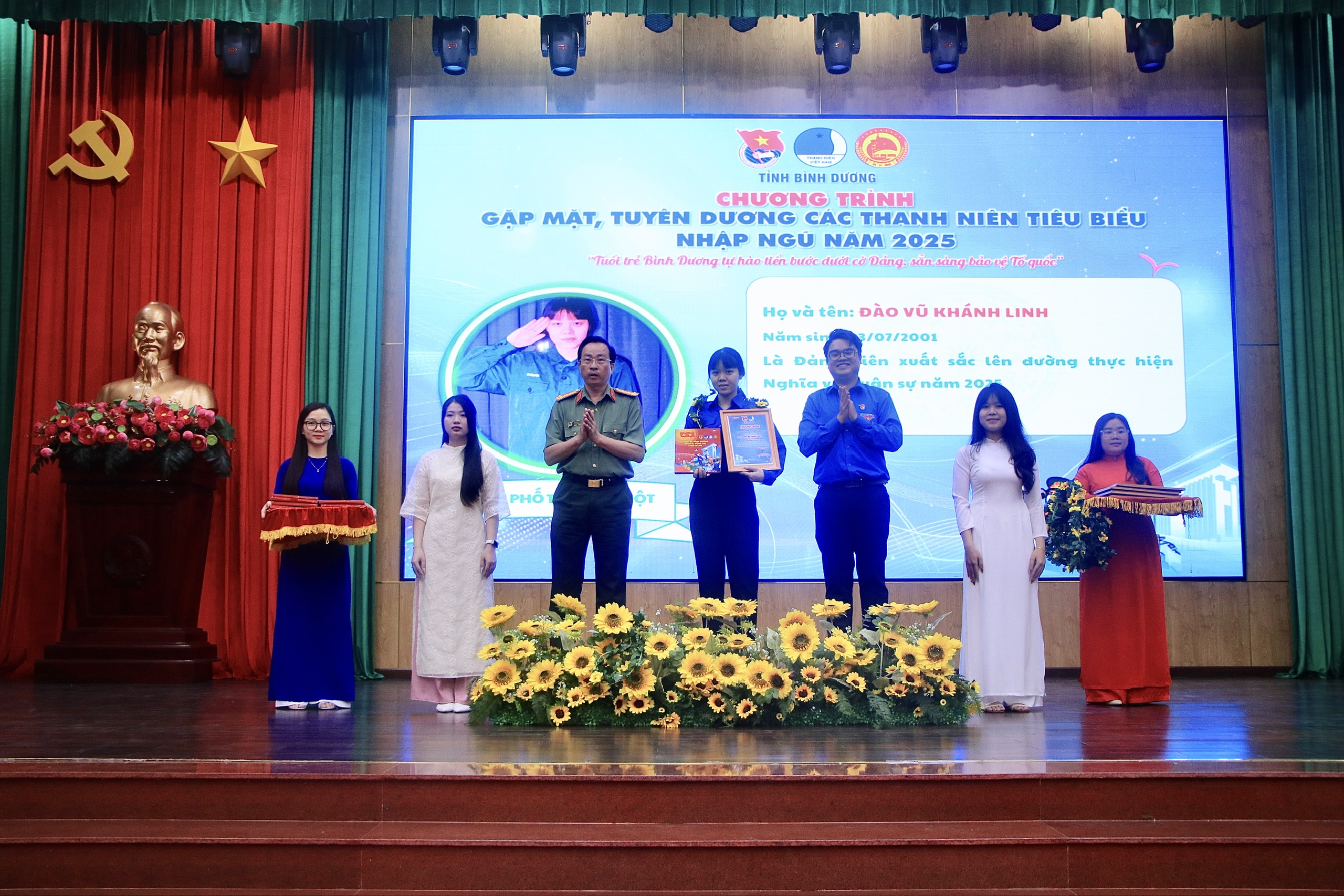 Tại chương trình, Ban Thường vụ Tỉnh Đoàn khen thưởng và trao thư tri ân cho 54 thanh niên, là đảng viên trẻ, đoàn viên thanh niên tiêu biểu đã tình nguyện viết đơn nhập ngũ, đại diện cho ý chí và nguyện vọng của tuổi trẻ Bình Dương, khát vọng cống hiến sức trẻ bảo vệ Tổ quốc.