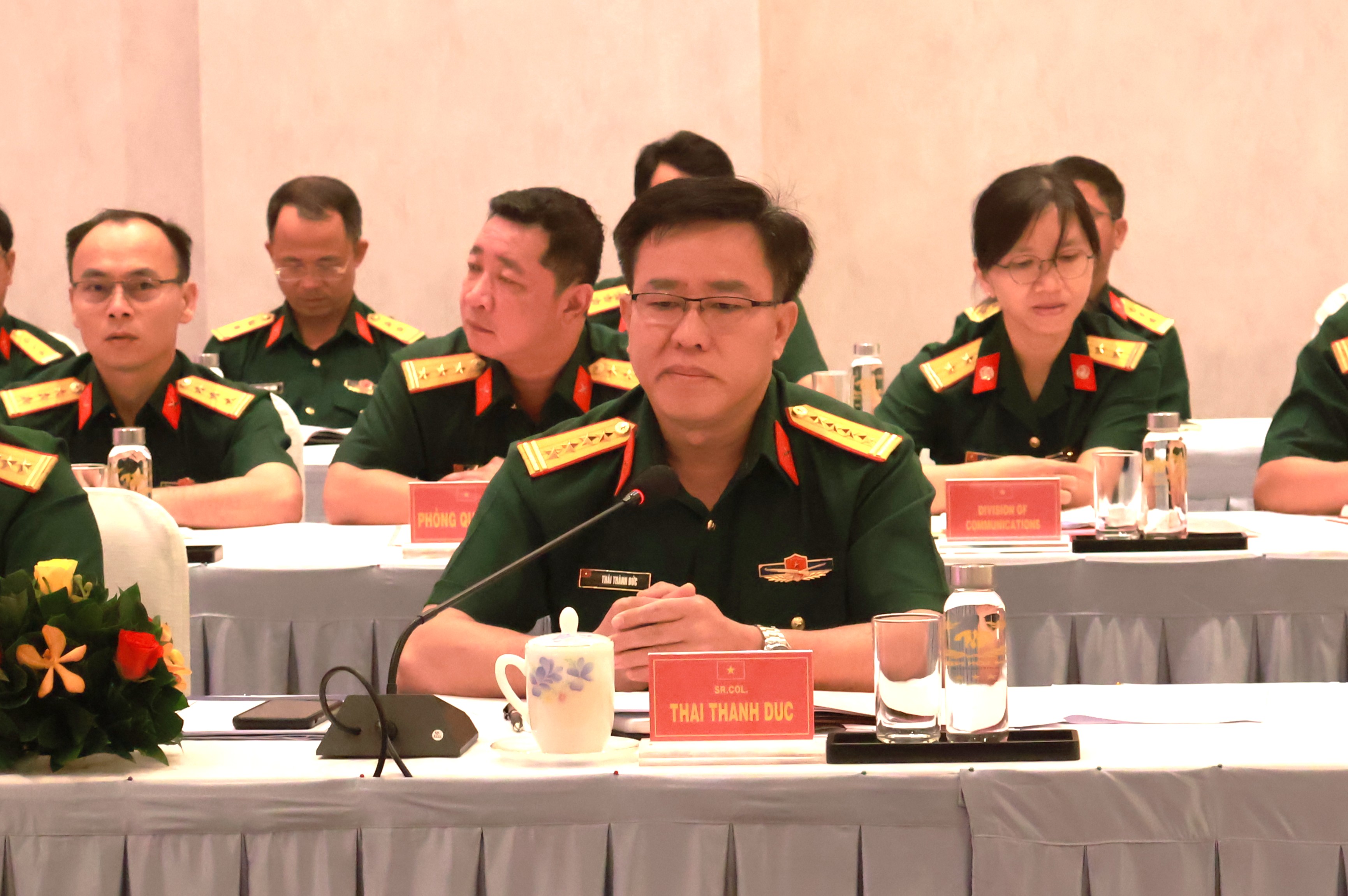 Đại tá Thái Thành Đức, Phó Chủ nhiệm Chính trị Quân khu 7 phát biểu tại tọa đàm.