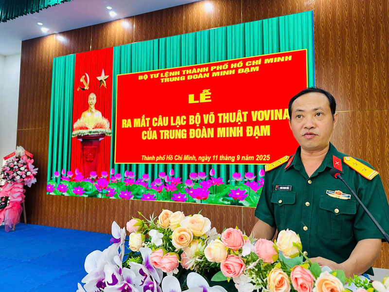 (QK7 Online) - Ngày 11/9, Trung đoàn Minh Đạm, Bộ Tư lệnh Thành phố Hồ Chí Minh tổ chức Lễ ra mắt Câu lạc bộ (CLB) võ thuật Vovinam. Trung tá Đoàn Thanh Tuấn, Trung đoàn trưởng dự, chỉ đạo.
