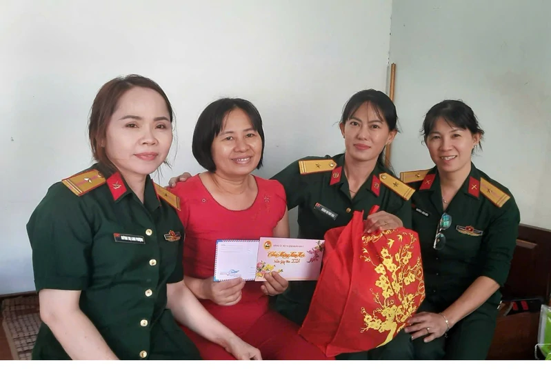 Đồng chí Hoa (thứ 2 bên phải) cùng Ban chấp hành Hội phụ nữ thăm, tặng quà hội viên có hoàn cảnh khó khăn. Ảnh: CTV