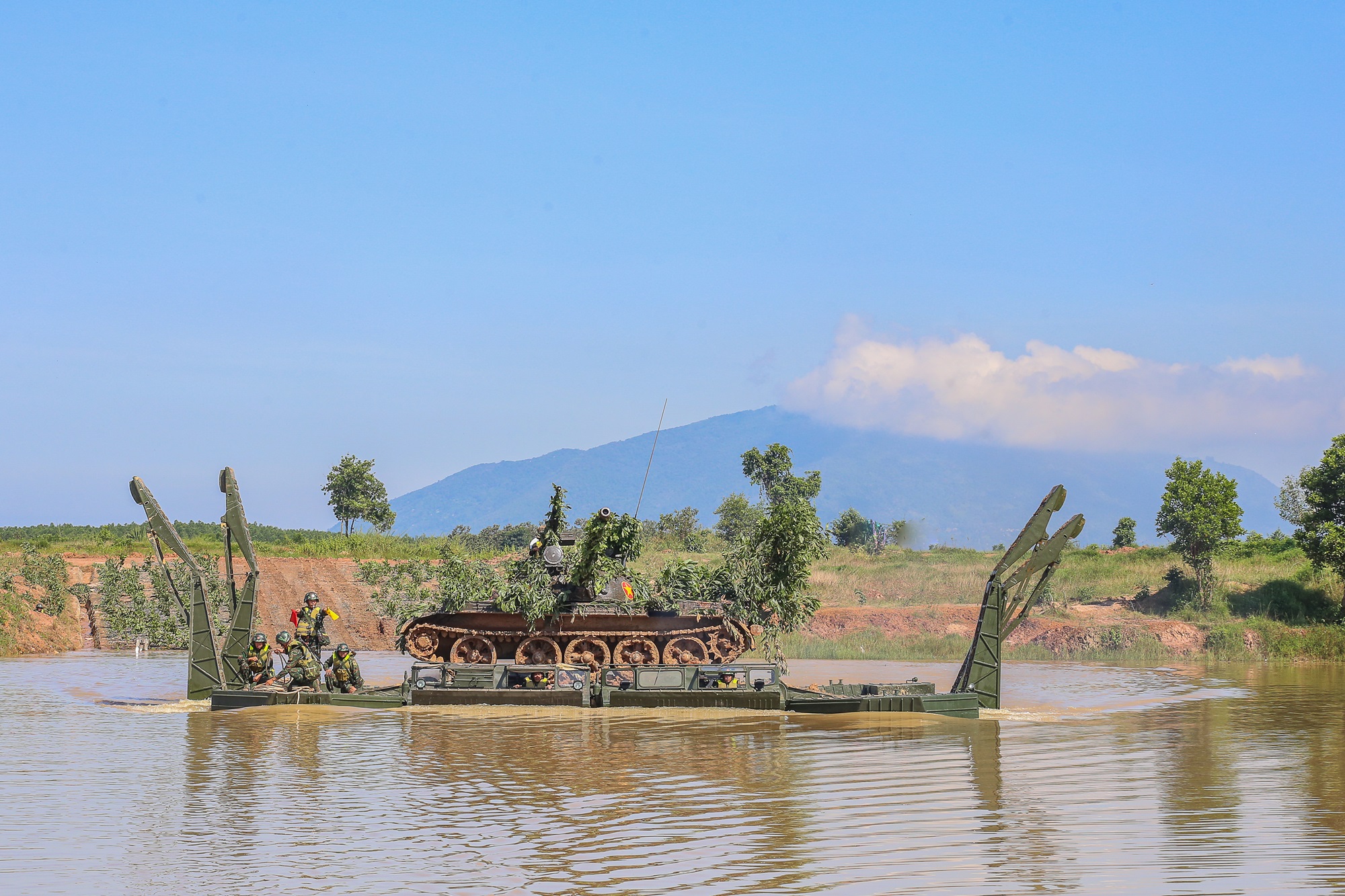 Huấn luyện vượt sông bằng phương tiện kỹ thuật tại trường bắn.